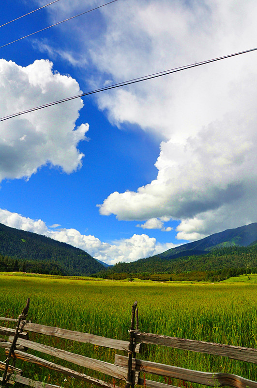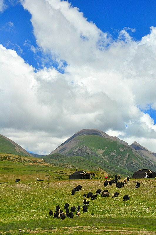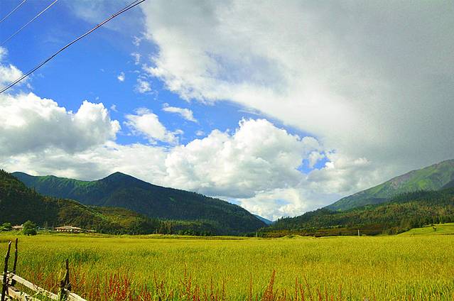 这一路的风景极好地诠释了“西藏小瑞士”的名号。田园风光,天蓝云白,牛羊成群,绝对诠释了人们心目中西藏的形象。