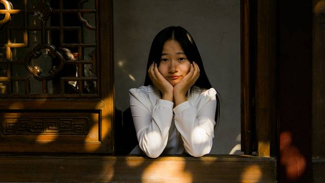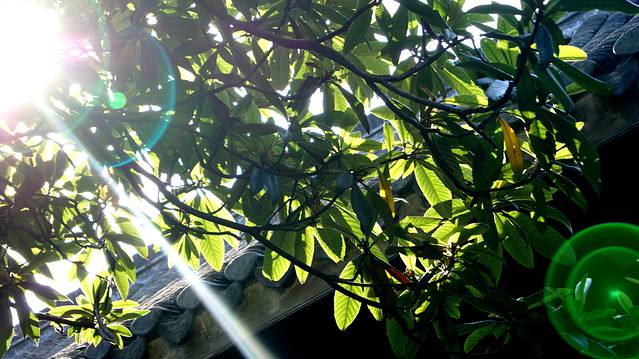 个园里的光透过树叶