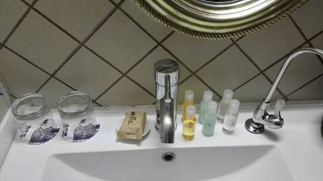 民宿的浴室,让我觉得感动的地方是沐浴用品里面有护发素!!!这对女孩子太重要了!!终于可以拯救下我的头发了!旁边的房洗漱用品的篮子牙刷的质量真不错,起码比我工作的四星酒店好,梳子是木质的上面写了乌镇,走的时候带走了一把,嘻嘻~~~~