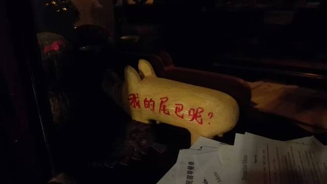 啊!这是民宿前台橱窗里的一只猪!我的尾巴的?你是猪吗?问我!