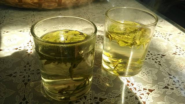 顺着乾龙路慢慢前行,一路上都是满山的茶园,碰到了一位茶农奶奶,被邀请去喝了一杯香气四溢的龙井。