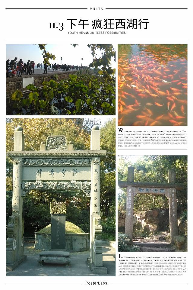 贵,但是味道可以。吃好了,从花港观鱼,立即开始了疯狂的西湖行走