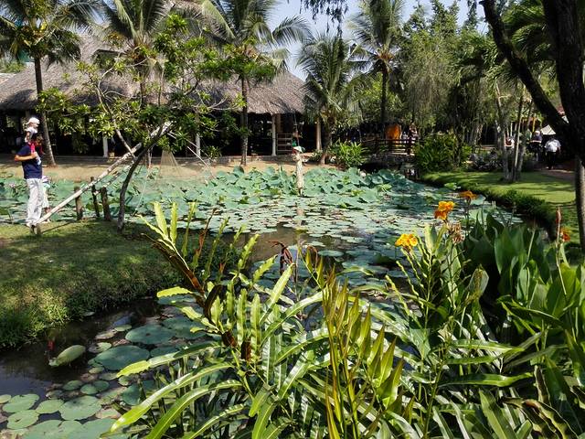提前一天预订了15美金湄公河一日游。坐了2小时汽车到码头,大巴约2小时到达离西贡70公里的美托,坐大船进岛又换小渔船进入小岛,观看制作春卷皮和椰子糖的全过程,品尝鲜甜的蜂蜜茶;然后坐在马车上听脆耳的马蹄声;最有意思的是坐晃晃悠悠的小木船,划行于芦苇椰林中,亲近河岸两边繁茂的水植物,转头回望身后戴着斗笠摇着船桨的越南妇女。清幽过后上岛吃水果听现场演唱。