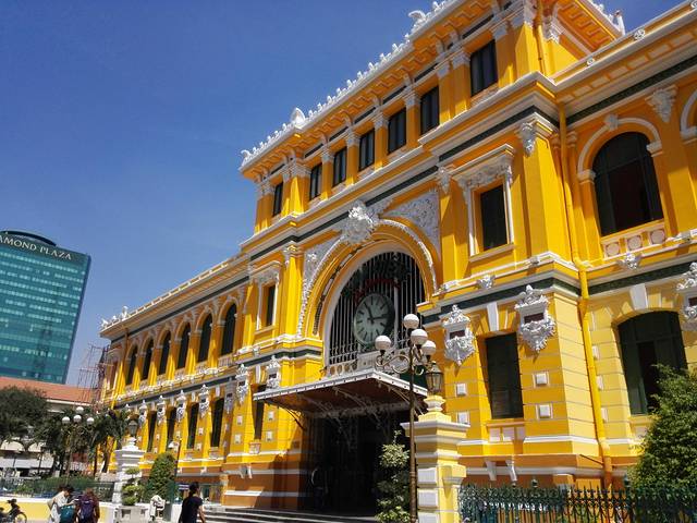胡志明市教堂,邮局,市政厅,愽物馆几处法国殖民时留下的老建筑。打车到圣母教堂,俗称红教堂,边上是还在照常营业中的百年老邮局,蓝天白云下,红黄两栋建筑互相辉映,甚美。门口买了精美的立体卡(100000盾)。中午觅食路上看到很多当地人直接坐在马路上吃米粉喝橘子汁,我们也坐下歇一脚,喝一杯,(10000盾),接着就找到了一家越南当地人吃饭的餐馆(约200人民币)很丰盛,但说实话酸甜的越南菜不合我的重口味。饭后前往独立宫途中看到四只美美的小鸟(480000盾),看看川流不息的摩托车混迹在汽车中,结束打车回酒店休息。胡志明市市内遍布着法式建筑,这是一座怀旧的城市,下午六点出门觅食,先经过规模庞大的边青市场,想起中午在统一宫附近看到几家特别棒的餐厅就准备前往,结果阴差阳错选了bbq,还得自己烧烤,趁而去败兴而归,还吃了英语不好的亏啊!回来路上再次经过热闹非凡的边青市场夜市,买了精美漆器两件387000盾,喝满满一大杯甘蔗汁(20000盾),甜的实在喝不下,红心红龙果(15元),释迦(6元),一夜无梦。