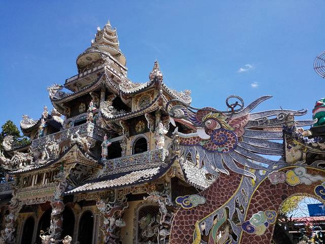 吃了早饭,沿着教堂、春香湖一路前往找寻票务中心要预定后天到美奈的车票。大叻和任何一个被人们所熟知的景点一样,都在大动土木,尘土飞扬,坏了这座法国人经营下的精美小城。途遇精明的华人后裔wendy,带我们买了去美奈的车票(130人民币) 谈妥了一日游的价格,包车从灵福宫-粉红玛丽修道院-老火车站-达塔拉瀑布-保大夏宫-疯狂屋结束。最喜欢大叻小城凉爽的气候,美丽的玫瑰,明媚的春香湖,法式情调的建筑。