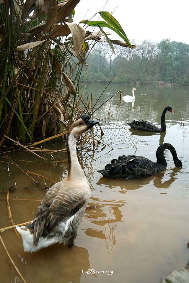 这儿的鱼呀、鸭呀、和天鹅只要一有食儿 ,就蜂拥而至,各个都是及其的肥硕。