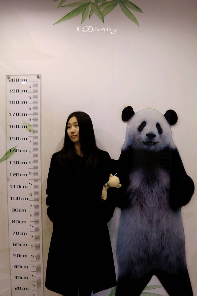 和大熊猫也来比比个子,虽然这标尺不算太准,但这个子也够了。