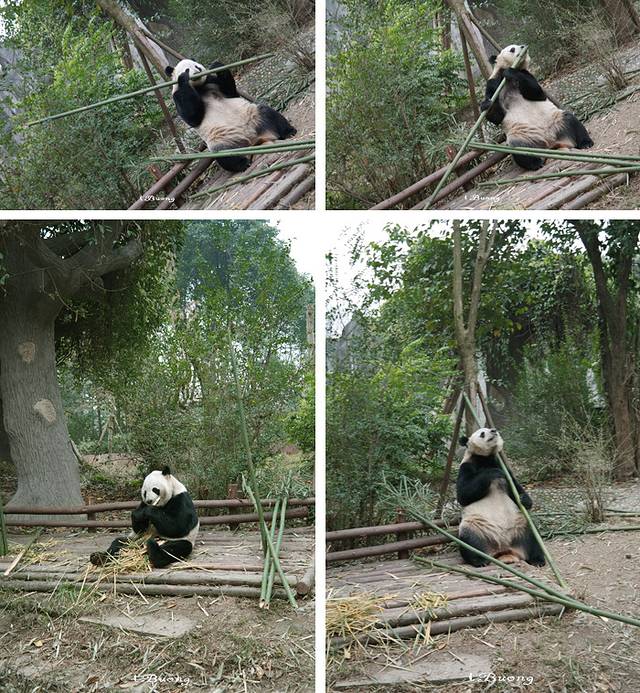 天气阴阴的,熊猫基地有山有水,还有些凉意。