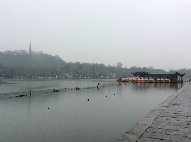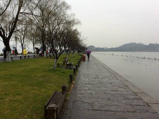 由于下着蒙蒙细雨,走在西湖的岸边那是非常有感觉呀,烟雨蒙蒙滴,一下子有了江南的味道。