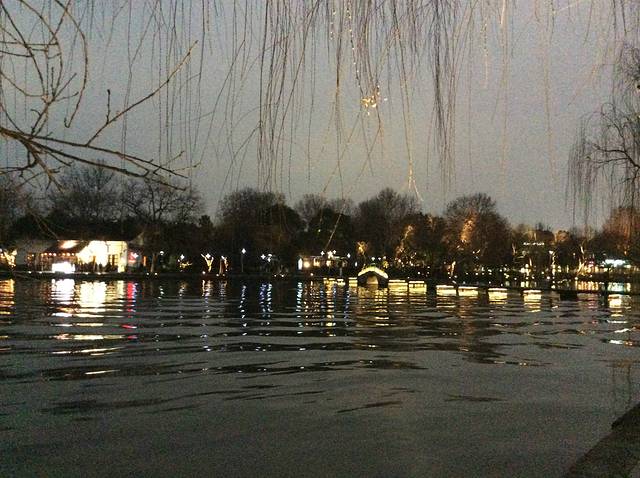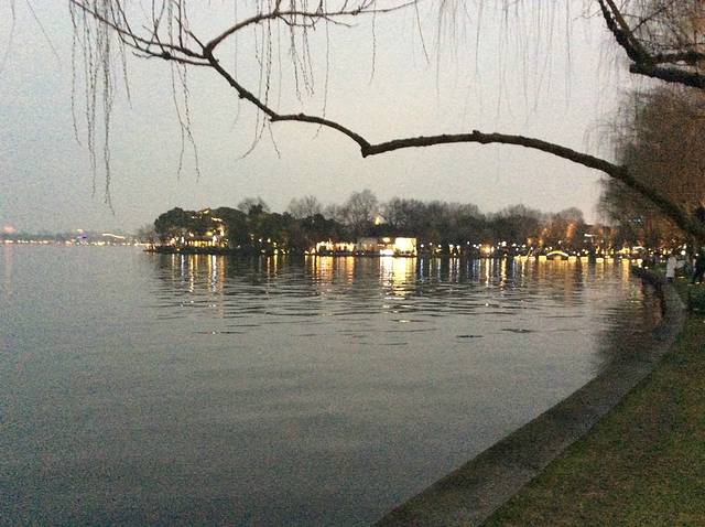 逛好了酒店,已经下午4点多了,去景区也来不及逛啦,只好原路返回,但是感觉还是很棒滴!然后到了大隐商场附近,乘坐游2下山,本来计划去雷峰塔的,但不知怎的,公车在没有任何通知的情况下,改道了,直接走隧道,出来就已经是柳浪闻莺啦,没办法,只好在柳浪闻莺附近下车,钱王祠!沿着钱王祠的牌坊慢慢走到西湖边,也是柳浪闻莺公园,从这里可以遥望北山,山上灯火通明非常绚丽,也可以遥看西湖岸边的商业区,霓虹灯闪烁,与北山的灯光辉映,别有一番感觉!临时决定改变行程,从柳浪闻莺沿西湖边溜达到昨天下车的地方,正好溜了这半边。
