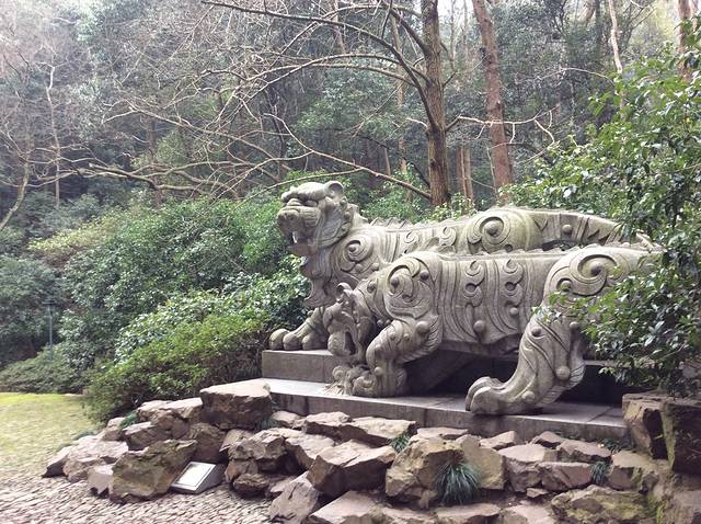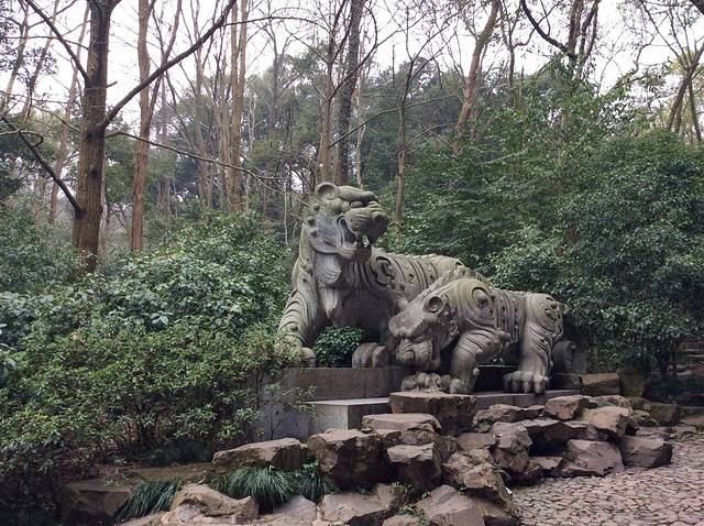 虎跑泉位于西湖景区的虎跑路上,交通很便利,附图公交车站,下车就是,本人是春节期间去的,人也不多。虎跑公园本身并不大,很幽静,进门一条长长的小路通往寺庙和泉眼,两边有溪水流过,蛮有感觉的!整个公园的主题就是寺庙和两只老虎,哈,但本人最爱的是老虎,园区内有三处石虎雕像,都非常可爱,很有人气,很多人排队和老虎照相。另外,喜欢喝茶的盆友,可以考虑在去的时候,带着些接泉水的容器,回来自己用泉水泡泡龙井喝!总体上来说,还是值得进去散散步的。