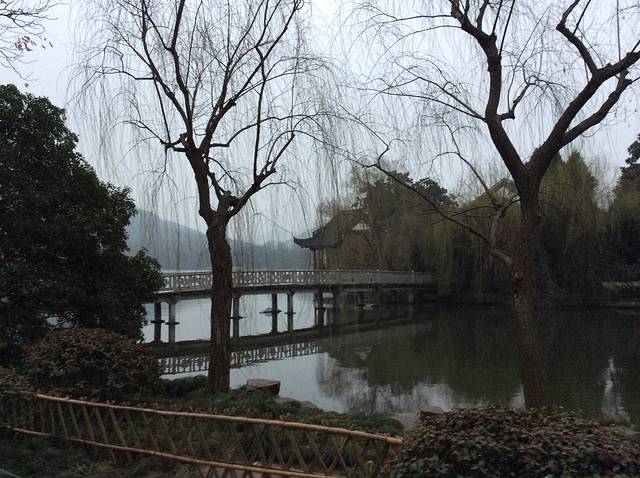 烟雨中的断桥别有一番感觉,远处的山间散发出了白白的雾气,配合着烟雨蒙蒙的天气,简直就是一副大自然的水墨画,非常美!