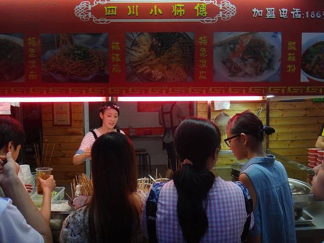 附近有很多小吃.麻辣烫.芒果.西瓜等等等等...早上也有很多早餐.肉夹馍.手抓饼什么的.