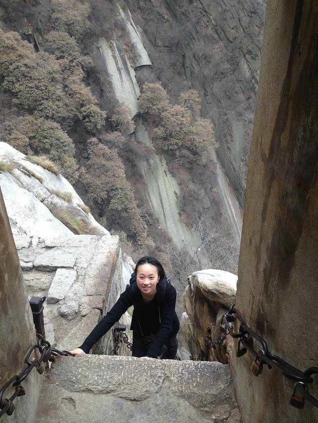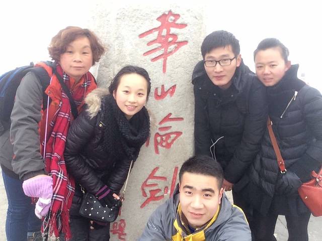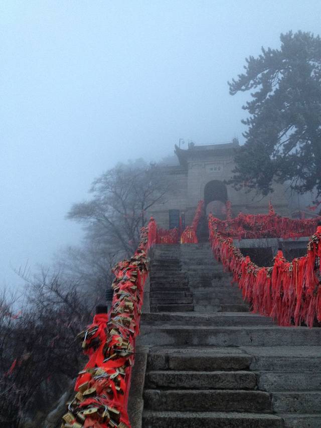 就这样,半睡半醒的到了早上,趁着人家还未开始抢厕所,赶紧先上厕所,泡泡面。待天亮以后,周围的人开始交流自己的旅游地点。我准备先去华山的,但是很多人都跟我说华山就今明下雨,让我也无奈,因为我西安的房间已经订好,计划先去华山,风雨无阻了!更纠结的是西安下车,还是渭南下车,因为渭南离华山更近,纠结的是渭南在大年初一是否有班车前往华山。这个问题,车厢里的渭南人帮助我,有一位好心的女士,帮我打电话询问,但结果是火车站没有,要去其他客运中心转一转才会有。我觉得有点麻烦,还是选择西安下,相信西安火车站应该会有班车前往的。 看着火车路过华山大门,真想跳下去。一小时后,到西安,才发现西安也没有班车去华山,大年初一休息,工作人员说做火车去华山站,于是马上买火车票前往华山站(又路过渭南了),看到这里,说明渭南下车更方便。华山站很小也很有老底子的味道,搭了一辆面包车,两人25元,也就去了,直接送到玉泉院这里。买票,进华山。因为是年初一,好多人到玉泉院来烧香,走到华山售票处才发现,进去的寥寥无几,更多的是在华山牌坊下拍照。我是来爬华山的,不选择“智取华山路”,也不会选择上山索道,和妈妈徒步开始了自古华山一条路,天气很好很好,阳光明媚。路上结伴了一对情侣(女的头上绑着小黄人气球,两人身穿黄色上衣),我们叫他们小黄人,还有4个当地汉子,我们8人就这样一起上山了,事实证明结伴真的很重要,不会觉得无聊,路上聊天也很有趣,上山具有动力。我们一起走过著名的百尺峡,千尺幢····在4小时后到达北峰,再一小时后到达五云峰,我和妈妈选择在五云峰住宿了,也和他们风道扬镳了,没有留下一张合影,比较可惜。山上我们吃了一份28元蛋炒饭,感觉盐好少,不管,填饱肚子再说。20人的大通铺,男女混住,100元一人,夜晚的华山很寂静,山上好冷,全都穿着睡觉,但我还是半睡半醒的,佩服自己体力可以这么好。