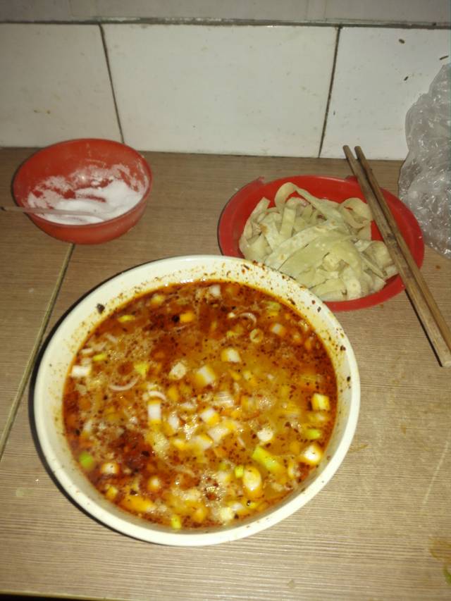 回民的美食,涮牛肚和灌汤包。灌汤包一般和西安的没有什么明显的区别。涮牛肚就别有风味了,主要是蘸料,不像大多数的用芝麻酱和蒜为主料,这里用辣椒油和几种粉状调料配出来的蘸料,吃起来别具风味。