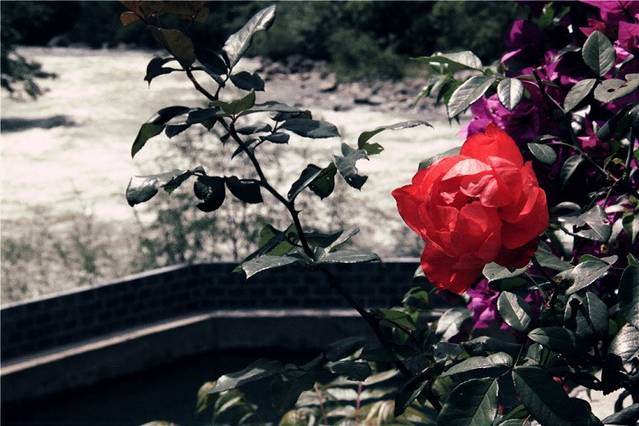 古城里面处处是盛开的花儿。