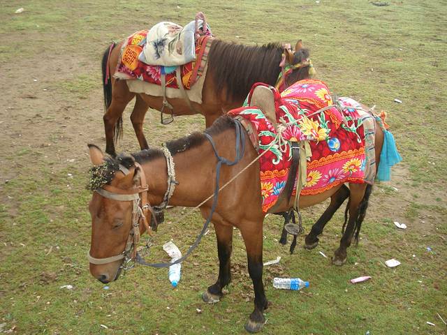 我们停下来拍照,一下牧民拉着马儿过来,15RMB骑一下,拍照就5RMB.