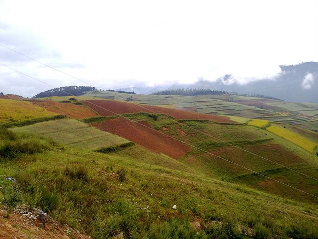 公路边上的风景还是很宜人的,一望无际的梯田。