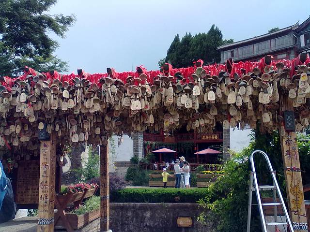 哈哈,我一早起床就去挂了许愿牌。早餐是吃街边的炸土豆和丽江粑粑,还喝了一小杯酥油茶。