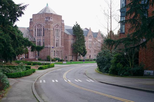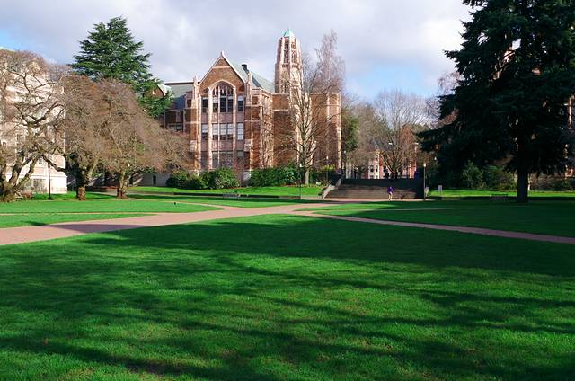 华盛顿大学在西雅图downtown的东北部Washington Lake湖畔,搭乘Express什么的基本15分钟就到了,和UBC相比,华盛顿大学是真大啊,150多年的建校史,也让这座校园里保留了很多19世纪的建筑,确实是做很美的校园。