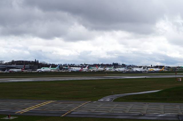 最后三楼的室外观景台,是可以看到所有已经印好公司图样的出厂飞机,在停机坪上可以看到基本全球所有的主流航空公司的身影。此外,还很幸运的看到了Dream Lifte,为运输787机翼特殊改造的,最大的定制运输机。