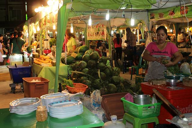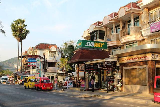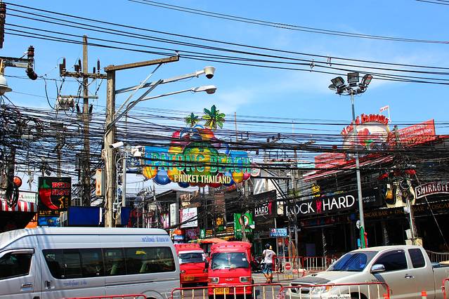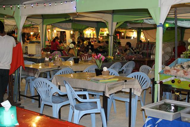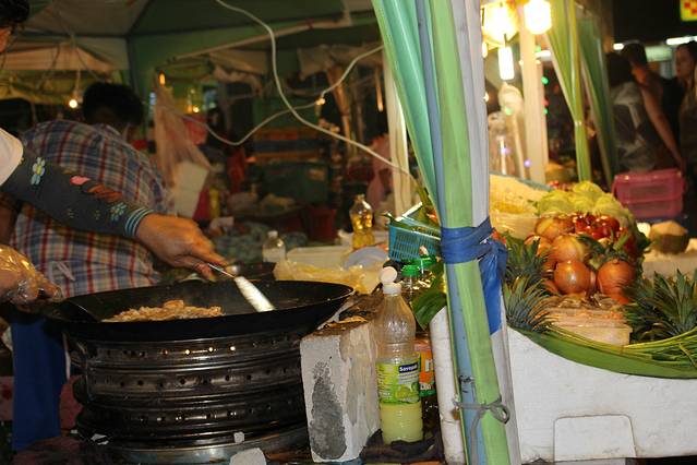 从普吉镇出来,不走原路了,我们差不多环了普吉半个岛,绕到卡塔,再到卡伦再回芭东。卡塔整个的感觉其实很不错,路的两边都是类似于这种建筑,很多有情调的小店,咖啡馆啊,可以去那里喝下午茶的。在经过卡伦的时候没有下车,因为昨天已经去过了,离开卡塔就直接返回芭东了,今晚吃什么?去了班赞海鲜市场,班赞海鲜市场在江西冷的后面,离我们酒店也很近,走一下就到了,白天的时候可以到里面自己去选海鲜,拿到二楼叫厨师做来吃,但是我们去的时候市场已经关了,晚上就是在市场外面有很多小摊,类似夜市,有卖海鲜,有卖炒饭,有卖炒面,也有果汁。到底我们是中国人,很多东西吃不惯,一连吃了好几餐的炒饭啦!!