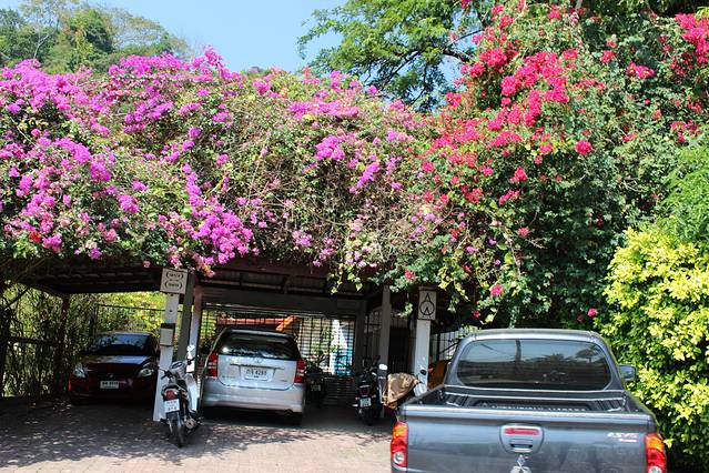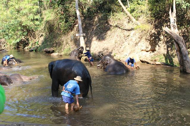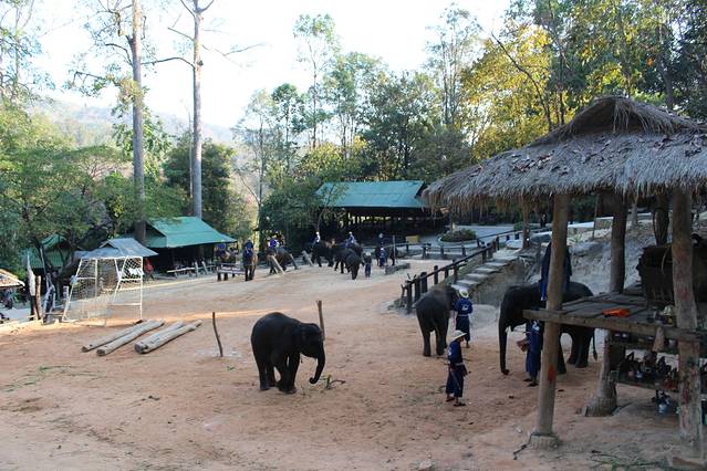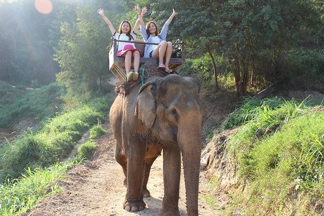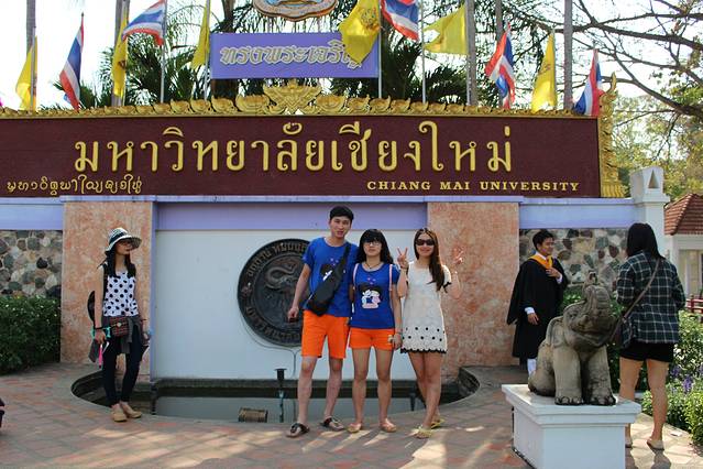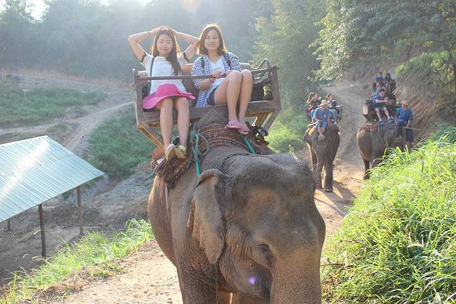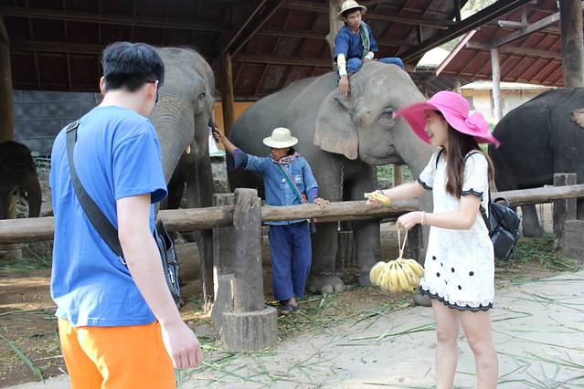 早上来到大象营,导游也是中文导游,这里的大象都是受过专业训练的。一大早过来真的很冷,可以带一件外套。首先是骑大象,路程不远,大概半小时左右。骑完要给小费,我们的训象师是个小伙子,很滑头,一个劲跟我们说100块,好吧最终没找着50的,还就给了一百。真后悔。一般给个40差不多。骑完大象之后,导游会过来发香蕉和甘蔗,用来喂大象,我只顾拍照了,没去喂,事实证明我是明智的,去喂的伙伴都遭遇了大象的鼻涕还是口水,好恶心。喂完大象,之后是大象洗澡,大象好像很享受的样子,一遍洗,一遍拉粑粑。而且有专门的人来收粑粑,据说这些粑粑都是用来制作纸的,所以小伙伴别在泰国买任何有关纸的东西,说不定是那什么做的。洗完澡,我们是看大象表演,大象会做各种事情,还真挺有趣啊,尤其是看到大象画画,简直神了,小伙伴要看的自己去看啊,我卖个关子。之后的行程是看兰花,可惜当时兰花好多都没开。我们只报了半天的大象营,下午是丛林飞跃,虽然我很想去,但是小伙伴好像不太喜欢,所以就没去。下午我们就去租了个车,逛了清迈,去了清迈大学,但是清迈大学不让进,进去要买票的。然后又准备去素贴山,但是时间有点不允许了,太晚了,而且很远,所以我们决定回古城去逛周六夜市,清迈周六和周日也是比较大,准备在那边吃饭然后买点伴手礼回去。