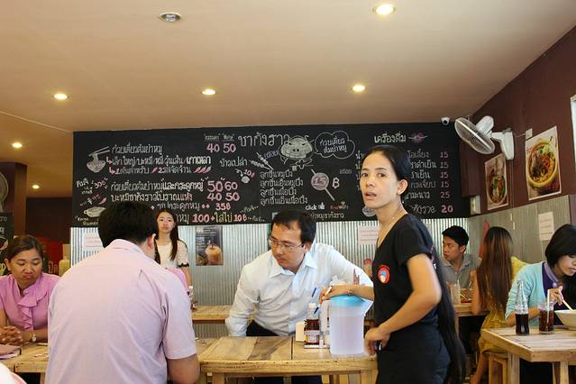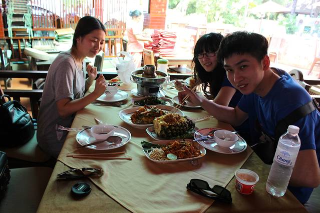 随意停下来的一家餐厅,有好多学生来吃,老板是个韩国人,所以吃的东西有点韩国和泰国合璧的,我们吃的是泡面一样的,没拍照,里面有贡丸什么的,总之味道不错。