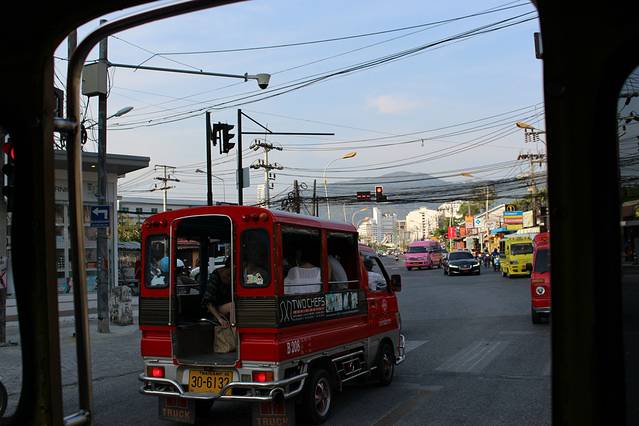 拜拜,卡伦。回芭东了。找了好几辆,才有一辆车愿意以350载我们