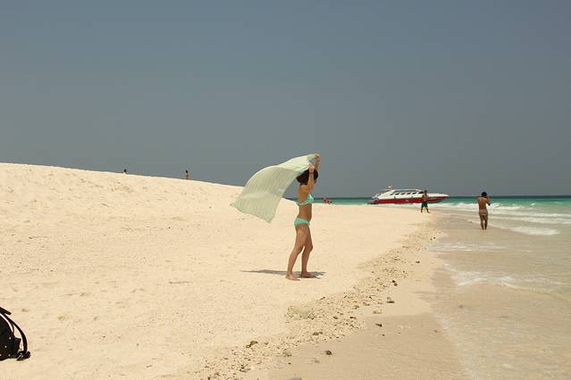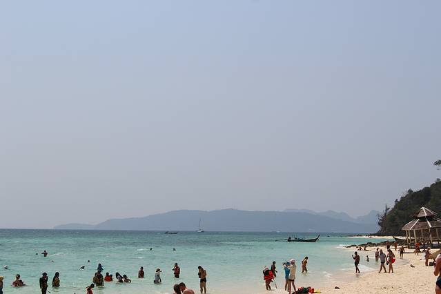 第三天了,终于可以出岛了。但是皮皮岛其实真的好远,坐快挺过去也坐了一个小时啊,再加上去码头花的时间,到了皮皮岛就直接吃午饭了。说也真不巧,那几天我身体不适,下水不方便,就没下去浮潜,虽有遗憾,但是不后悔。出发前我自称从小在船上长大的,是真的,但是当船停止的时候,晃的我竟然晕船了。太丢人了。浮潜第一个地方是蚊子岛吧。不下水的就在船上玩,然后就去竹子岛吃午餐,所谓的午餐是自助餐,相当的难吃。但是那边的海水真的很美。离开竹子岛之后是去猴子沙滩什么的,就看看猴子,扔香蕉给他们吃,最后是去玛雅湾的沙滩呆了半小时,然后就走了。这么一天差不多也都是在船上度过啊,想想看要是整个跟团旅行,真的是好累啊。回到酒店还早,我们休息了会就去吃完饭了。