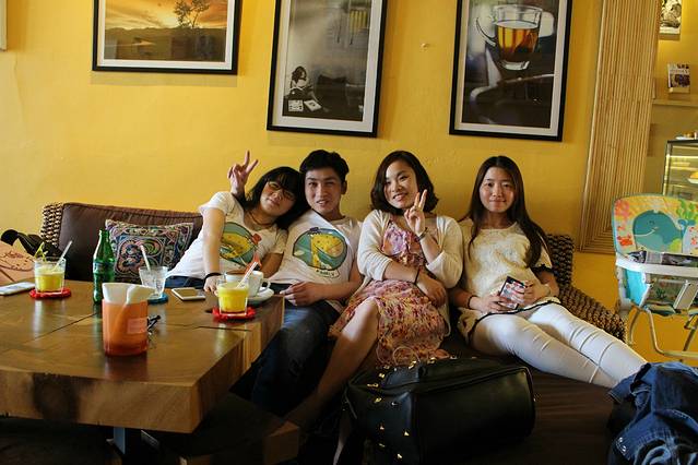 小伙伴们果然很吃力了,找了个沙发就躺了下来。这家店有长沙发,太棒了。一不小心,有俩伙伴睡着了,店主走过来说:you can't sleep here, we are caffe. 虽然被说了,但是店主的语气并不让人讨厌,是好意提醒。于是叫醒了小伙伴,看了看外面的太阳,好像好一些了,那就继续出发吧!