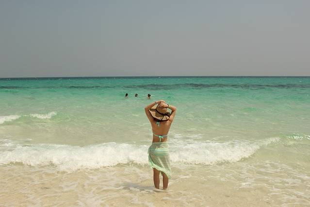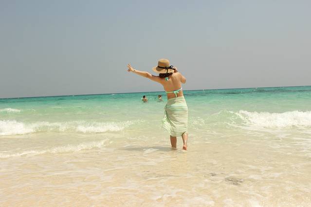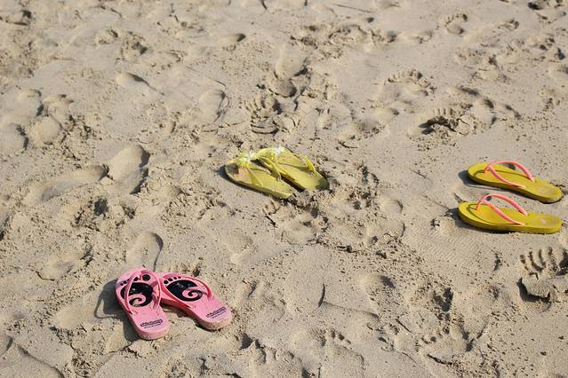 脱掉拖鞋,踩沙子吧,这里的沙子都很细,踩上去很舒服。