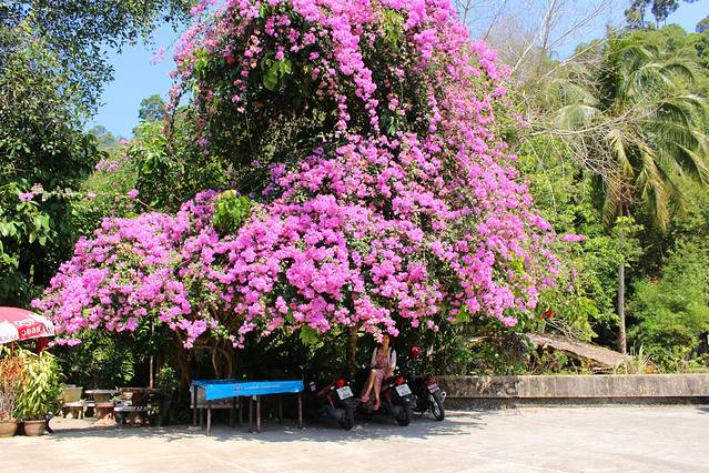 吃完来海滩,第一次看到那么蓝的海水还是有点激动的,先给三角梅还是四角梅?拍一张吧。