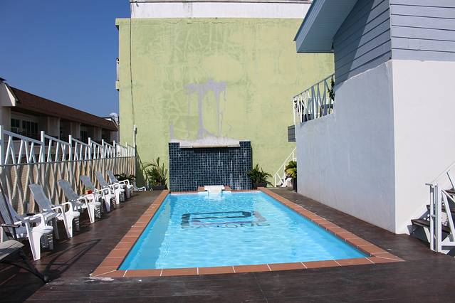 顶楼的游泳池,原本以为是荒废的,没想到到了晚上人还挺多