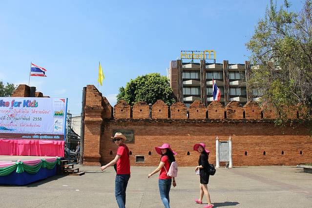 早上定了酒店的送机,到普吉机场,准备去泰北玫瑰--清迈,清迈本来是我很想来的一个地方,但是此次行程清迈停留太短了,所以拜县等地方都没去。我们住在古城对面,所以第一天到清迈的时候,已是中午,我们决定下午就逛下古城,吃点东西。随意经过一家小店,叫了什么?对!炒饭!炒饭贯穿了我们一整个泰国之旅啊。古城最有名的塔佩门,我们就住在他的对面,古城里面也有很多的市场,随意逛逛看看有什么可以买的,打算在清迈买了回去,因为清迈真的要便宜。清迈有很多为中国人服务的旅行社,是中文服务的。我们去的叫汉清迈,老板是台湾人,我们去预约了第二天的马沙大象营,然后去女子监狱预约了马杀鸡,也坐了双条车去了宁曼路,吃了mango tango,人很多,但是攻略推荐的东西只能说贵,但是味道也就这样。还不如自己随意找来的。宁曼路比较小资,可以逛逛。晚上回到古城马杀鸡去了,到底清迈比普吉便宜啊,但是说实话,普吉的那家let's relax真的环境很棒。