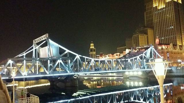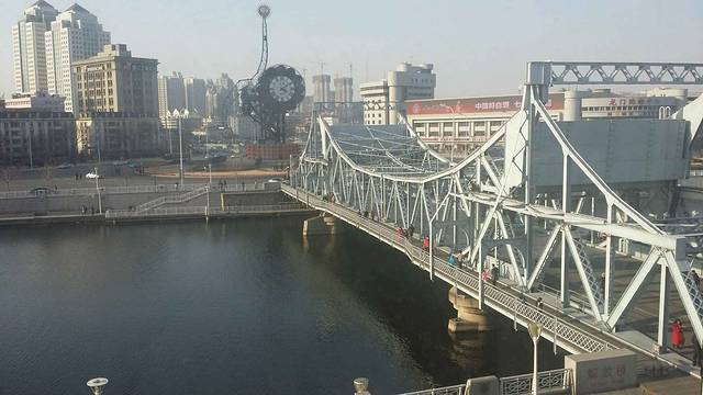 从窗户看出去就是海河 解放桥 世纪钟