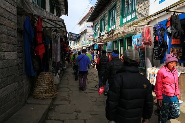 Lukla的街道,这里是徒步的起点,不宽的街道十分热闹,两旁的商店可以买到徒步时所需要的一切