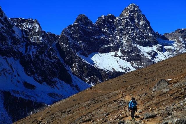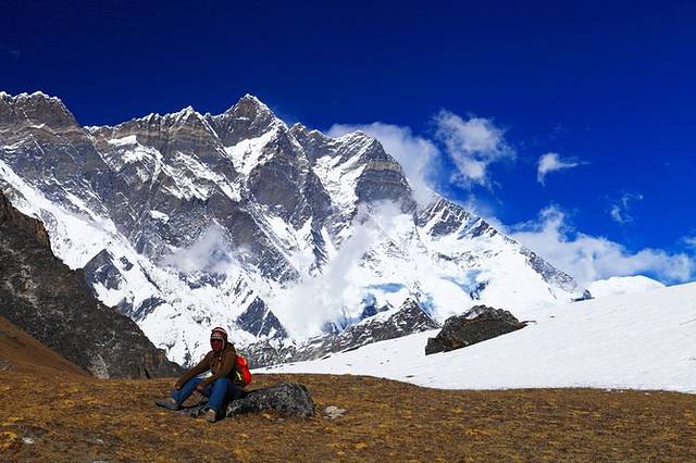 去往Chhukhung Ri的路上,背景是世界第四高峰洛子峰,那天这一路只有我和我的向导