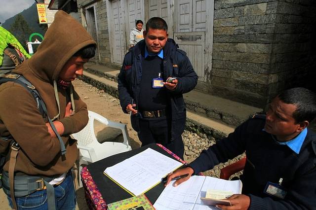 在街道的尽头有一个检查站,在这里需要登机护照信息,从这里,徒步正式开始了