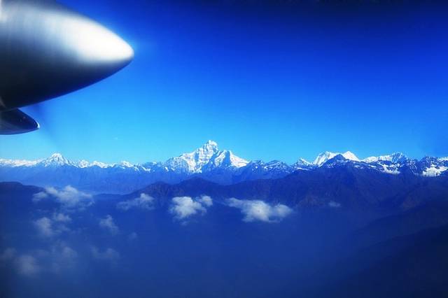 对于这个小飞机,我还是心里有些没底,2年前的空难让我惴惴不安。然而飞机上的景色让我立刻忘记了恐惧。飞机冲出雾霾封锁的加德满都,直上云霄,喜马拉雅山脉山脉一字排开。很幸运我抢到了靠左边的第一个座位,非常适合观景拍照,虽然隔着玻璃,我还是不停的按动相机的快门