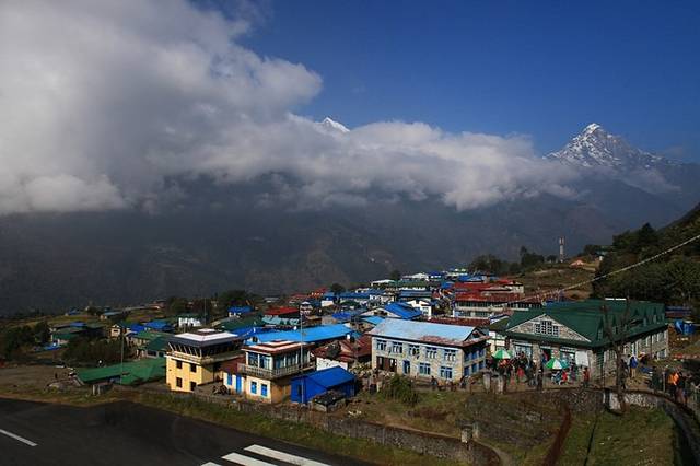 抵达Lukla大约是早晨时间8点半,天气晴朗,不过远方已经开始起云了