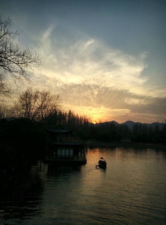 夕阳西下 小船人家
