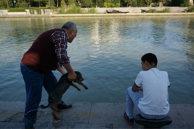 觉得晚上坐船游览实在是体会一般,既然时间来得及,就去运河边溜达一下,感觉不错。有人在钓鱼,有老人在打牌,更可爱的是一个老头给狗狗洗澡。在运河边慢悠悠的溜达,会有一种和这个城市贴得很近的感觉。