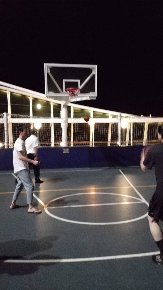 一直无法想象,怎么在海上攀岩啊,直到看到这船上的攀岩墙,但是对于攀岩的要求很高,我们就没有去体验啊。不过老公也会参加篮球活动和高尔夫