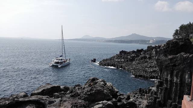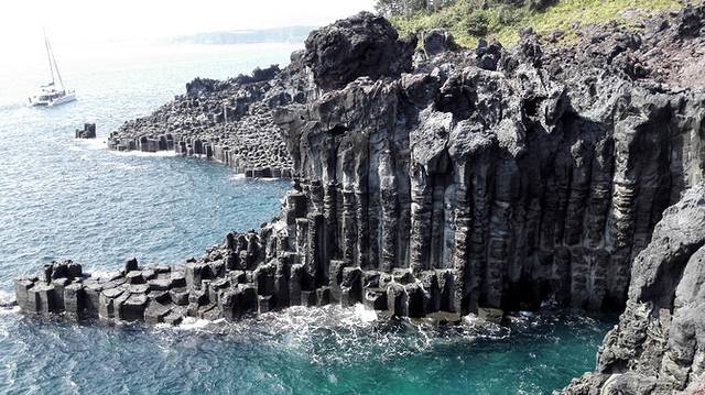 它是玄武熔岩流出后急剧冷却而形成的,是韩国最大的节理带;大大小小四方或六角的垂直节理石柱,仿佛雕凿而成,景色如画;惊涛拍案,可激起高达20米的白色浪花,令人叹为观止。