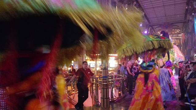邮轮上有一条皇家大道,会在有一天晚上大道上会安排大型的游行表演,我之前一直期待的梦工厂明星大游行表演,不知道为何这次变成了异域文化大表演了,好遗憾啊!