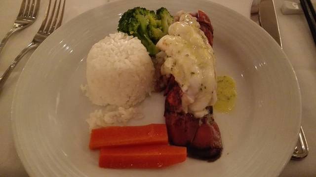 大家回到船上后,由于是接近整个旅程的尾声,那边主餐厅还专门提供龙虾大餐~~服务生一个劲的推荐我们,一次行程只由一餐可是享用到大龙虾哦