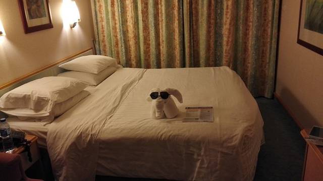 一种是超值经济的内舱房(没有窗户,看不到外面):适合对住宿要求不是太高,而且喜欢在邮轮上玩,只是晚上回去睡个觉的人。因为邮轮上每天都安排了各种各样活动,你完全不想一直呆在房间里。