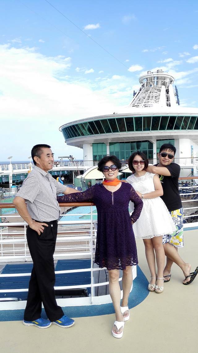 有位朋友正在甲板上晨跑,硬被我妈拉着让人家帮我们全家拍照,在这里感谢下这位朋友。还帮我们想了很多pose~~