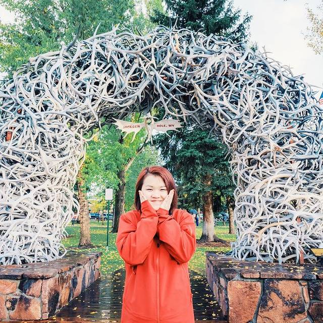 经过JACKSON去往TETON国家公园,天气不好,沿东线一路漫漫轻纱无法看到全貌,更别说远处的雪山,湖泊什么的了。我们就没有多作停留,尽管不太甘心多次下车贪看美景,期望太阳快点出来。上天还是多有眷顾我们,没有美景,却给我一个小惊喜。